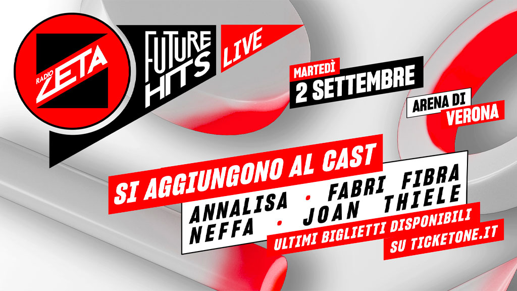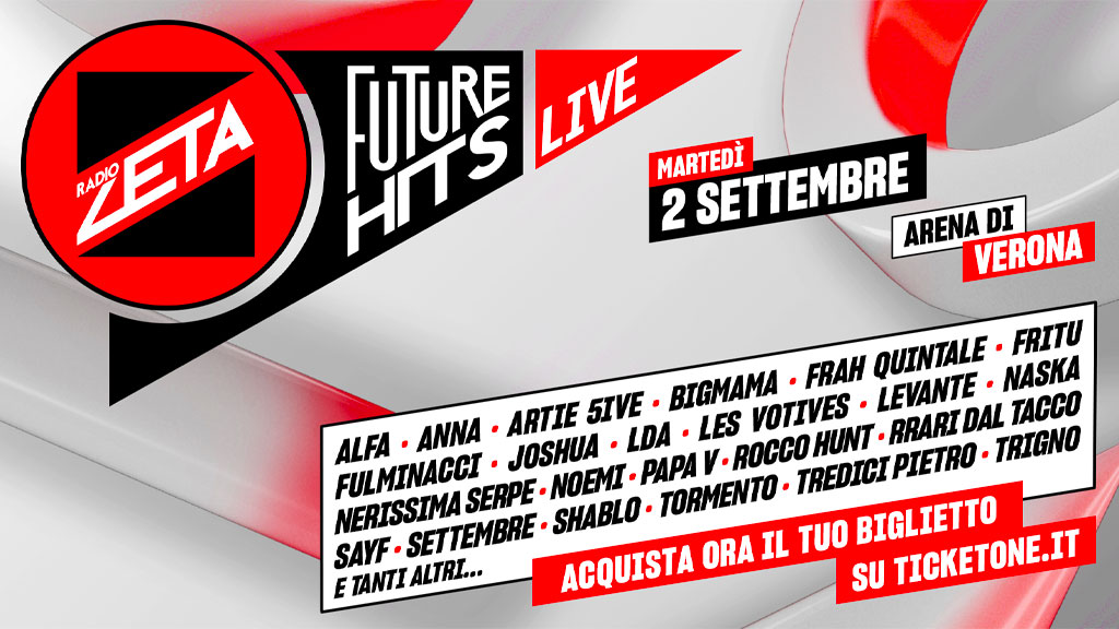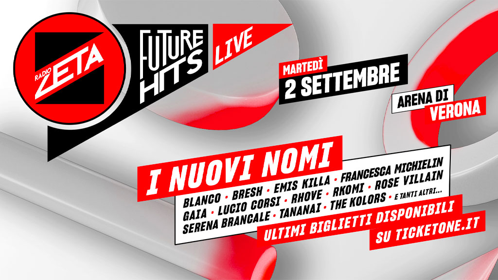 Dopo il debutto nell’estate del 2022, il Future Hits Live si è affermato come un evento imperdibile per la musica dal vivo in Italia, diventando un appuntamento fisso che segna l’inizio della stagione estiva. Radio Zeta continua a essere la voce di riferimento per le nuove generazioni, accompagnandole nella scoperta degli artisti del momento.